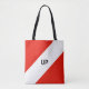 Sac fourre-tout moderne à rayures en diagonale rouge et blanc. Le texte peut être personnalisé.