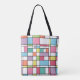 Ce sac fourre-tout a un design Bauhaus dans les couleurs pascales de violet, jaune, orange, rose, bleu et vert. Joli et festif pour la saison.