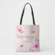 Tote Bag Bee Happy bumble abeilles rose or fleuri monogramm