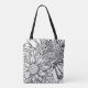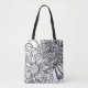 Tote Bag Black Chrysanthemums Line Drawing with Name