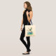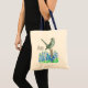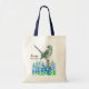 Un sac fourre-tout décoré d'un mockingbird gris sur un poteau avec des fleurs sauvages de bleuets fleuris dessinés à l'encre et peints à l'aquarelle. Inspiré par l'oiseau de l'état et la fleur de l'état du Texas.
