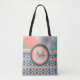 Tote Bag Boho Sky Turquoise, orange et Motif rose