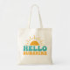Le design du sac fourre-tout comprend l'expression joyeuse "HELLO SUNSHINE" dans une police ludique d'inspiration rétro aux couleurs vives et relevantes. Le mot "HELLO" est en bleu turquoise gras, tandis que "SUNSHINE" brille dans un jaune chaud et ensoleillé, créant un contraste vibrant et attrayant. Au-dessus du texte, un graphisme stylisé avec rayons radiants ajoute une touche supplémentaire de chaleur et de positivité. Ce sac fourre-tout est parfait pour transporter vos essentiels tout en diffusant des vibrations heureuses partout où vous allez.