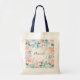 Sac fourre-tout avec une élégante bordure fleurie. Fleurs et feuilles en rose et vert.