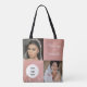 A chic and modern Tote design for makeup artists and beauty professionals. This layout features a dusty rose background with leaf accents and elegant script typography. Perfect for salon owners, bridal makeup artists, and beauty consultants seeking a stylish, professional brand identity. Add your photos, logo and name for a personal touch.