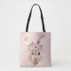 Tote Bag Bunny D'Aquarelle Rose Pastel Moderne Avec Fleurs