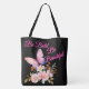 This striking black tote features a radiant pink butterfly soaring above a bouquet of soft blossoms and earthy leaves, crowned with the empowering message: Be Bold Be Beautiful.