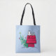 Profitez de ce design de vacances Peanuts avec Snoopy dormant sur sa maison de chien à côté de son arbre de Noël.