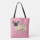 Tote Bag Carlin Fun Chien Cartoon Mops Pink Love Hearts Mot