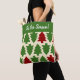 Juste à temps pour le shopping de Noël ! Des arbres de Noël de couleur vintage recouvrent le devant de ce sac fourre-tout à thème de Noël customisé. Le sapin de Noël vert pin et couleur vin ajoutent un style vintage à votre folie commerciale.