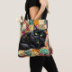 Un mignon chat noir posé sur une courtepointe sur une chaise à bascule. Un sac fourre-tout sur le thème du chat pour tous ceux qui sont obsédés par les chats !