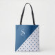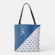 Tote Bag Chic Monogramme Bleu Polka Pot Géométrique
