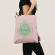 Un sac fourre-tout motif en arc rose clair et élégant avec un badge vert doux en quatrefoil, que vous pouvez personnaliser en ajoutant facilement votre propre monogramme et votre nom. Cela fait partie de la collection de printemps du Monogramme vert du Nil des pétoncles Dahlia en fleurs.