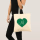 Ce sac fourre-tout présente un cœur vert Kelly avec une initiale monogrammée blanche en son centre. Personnalisez-le en redimensionnant/repositionnant le cœur vert et/ou en personnalisant le texte/monogramme. Excellent cadeau pour une demoiselle d'honneur.