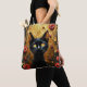 Tote Bag Cute Black Cat With Red Roses