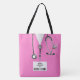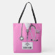 Sacoche-cadeau unique sur le thème médical pour infirmière avec gommages d'hôpital rose et stéthoscope. Modifier le texte pour ajouter le nom.