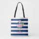 Tote Bag Cute Pink Flamingos Tropical Leaf, Striped