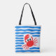 Tote Bag Cute Red Crab & Blue Waves Coastal