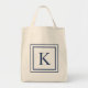 Clean, modern white background with double ribbon square border design and customizable monogram in the center. Double sided design. Personalization options available for select products