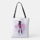 Élégant sac cabas personnalisé Disco Bachelorette pour l'équipe de la mariée. Dans de belles couleurs dégradées allant du lavande au bleu pervenche et rose avec une boule disco funky, silhouette de cowgirl, police rétro glamour "Disco Darlin'" et un fond aquarelle. Ce design élégant et sophistiqué est facilement adaptable à tout dîner spécial et/ou événement dansant. Recherchez ID928 pour voir d'autres produits de cette collection tendance.