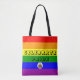 Célébrez les gays, lesbiennes, trans, et l'éventail complet de la LGBTQIA+ Pride avec ce drapeau arc-en-ciel sur un fourre-tout élégant. Le message à l'avant et à l'arrière est entièrement personnalisable avec un message de votre part.