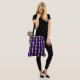Un sac fourre-tout avec un motif charmant mais drôle. Conçu avec un lama géant soufflant une grande bulle rose tout en mâchant de la gomme. Portant une couronne d'or et une cravate d'arc noir. Arrière - plan violet foncé.