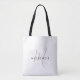 Élégant Sac fourre-tout de Monogramme moderne blanc vierge rose. Un élégant monogramme Blush Pink combiné à une police san-serif noire propre donne un look contemporain.