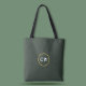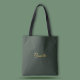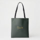 Un Tote bag stylé et élégant de couleur vert forêt avec un nom doré et des lettres monogrammes au dos : parfait pour le shopping, l'école, etc.