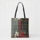 Tote Bag Élégant Plaid Vert & Poinsettia Rouge Noël