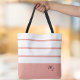 Tote Bag Élégantes Initiales Monogramme Rayures Modernes Gr