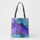 Tote Bag Encre d'alcool Turquoise et violette Art Abstrait