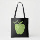Sac fourre-tout de professeur de Whimsical, avec des graphiques d'une pomme empreinte de léopard verte, sur un arrière - plan noir. Le texte vert personnalisé dit Enseignant et peut être personnalisé pour lire ce que vous voulez.