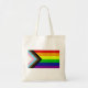 La variante "Progress" du drapeau arc-en-ciel ajoute un chevron le long de l'arbre qui présente des rayures noires, marron, bleu clair, roses et blanches pour amener ces communautés (les personnes marginalisées de couleur, les personnes trans, les personnes vivant avec le VIH/SIDA et celles qui ont été perdues) au premier plan ; "la flèche pointe à droite pour montrer le mouvement, tout en étant le long du bord gauche, montre que des progrès restent à faire."