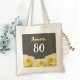 Fleur de rose jaune Sac fourre-tout 80e anniversaire. De belles roses jaunes. L'arrière - plan est gris tableau noir. Le texte est en blanc et jaune et est facilement personnalisable - personnalisez-le avec votre nom et votre âge.