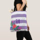 complétez votre collection de signature avec ce sac fourre-tout arrière - plan floral large rayé pastel violet. original entouré d'une bordure géométrique avec un bouquet floral coloré couleur eau. appuyez sur le bouton personnaliser pour ajouter votre texte initial ou votre texte.