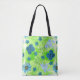 Tote Bag Fleurs bleues en vert citron