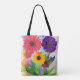 De belles fleurs colorées en orange, violet et jaune, peintes dans un style pop art, créent un sac fourre-tout attrayant et joyeux.