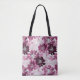 Tote Bag Fleurs roses et bordeaux sur rose poussiéreux