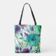 Tote Bag Flores d'aquarelle bleu Rose pourpre