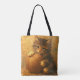 This charming shopping bag features a fluffy kitten clutching a ball of yarn, painted in a warm, impressionist style. The textured brush strokes and golden tones create a cozy, nostalgic feel—perfect for cat lovers and art enthusiasts alike.