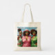 These bags were super cute (I purchased 3). The material is more of a canvas look & feel. The colour of the bag is slightly off white, but the letters look exactly as pictured. I took 3 photos in different lighting. Would recommend! I liked how there was an option to choose the font and colour of the name. The words are legible and the colours are exactly as pictured.