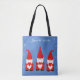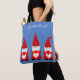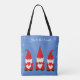 Trois Gnomes de Noël et flocons de neige sur le Sac fourre-tout bleu ciel. Le texte peut être personnalisé.
