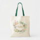 Un sac fourre-tout à guirlande de roses élégant personnalisé avec un nom en écriture dorée chic. Conçu par Thisisnotme©