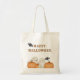 Sac fourre-tout d'Halloween festif avec une chauve-souris, un fantôme, des citrouilles et Happy Halloween. Parfait pour le tour ou le traitement, les faveurs de fête, ou le transport de bonbons à la éffrayante!