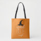 Envoyez votre petit truc ou friandise avec cet adorable sac personnalisé en orange d'Halloween festif, avec "mignon méchant" en blanc surmonté d'une illustration casquette de sorcière noire. Personnalisez avec un nom en écriture de script moderne blanche.