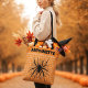 Add a dash of spooky farmhouse flair to your Halloween with this Custom Name Halloween Black Spider & Web Tote Bag from “Plaid Perfection”!