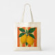 Ce fourre-tout chic présente une empreinte citron vibrante sur une toile durable, dressée contre un arrière - plan audacieux de rayures verticales orange et blanche.