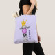 Sac avec un lama géant soufflant une grosse bulle rose. Portant une couronne d'or et une cravate d'arc noir. Arrière - plan violet clair. Personnalisez avec un nom.