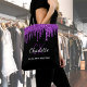 Un fond noir élégant. Décoré de fausses gouttes de paillettes violettes, aspect de peinture qui coule. Personnalisez et ajoutez votre prénom, vos initiales de monogramme et votre nom complet. Le nom est écrit avec un style de lettrage manuscrit.