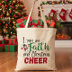 Express votre foi et votre amour de Noël avec ce sac fourre-tout festif qui met en vedette le dicton "Je cours sur la Foi et la Soirée de Noël" en rouge et vert avec un amusant accent snowman.